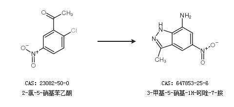 1.通过2-氯-5-硝基苯乙酮合成3-甲基-5-硝基-1H-吲唑-7-胺
