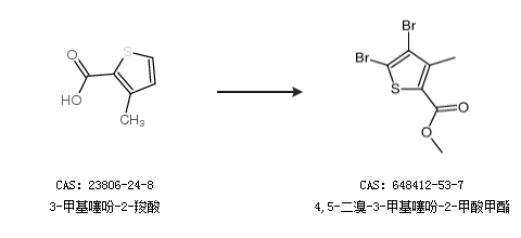 1.通过3-甲基噻吩-2-羧酸合成4,5-二溴-3-甲基噻吩-2-甲酸甲酯