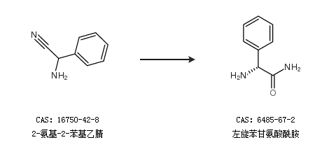 2.通过2-氨基-2-苯基乙腈合成左旋苯甘氨酸酰胺