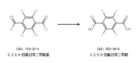 2.通过2,3,5,6-四氯对苯二甲酰氯合成2,3,5,6-四氟对苯二甲酸