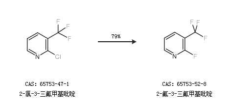 1.通过2-氯-3-三氟甲基吡啶合成2-氟-3-三氟甲基吡啶,收率约79%;