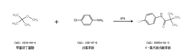 2.通过甲基叔丁基醚和对氯苯胺合成4''-氯代新戊酰苯胺,收率约97%;