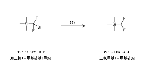 2.通过溴二氟(三甲基硅基)甲烷合成(二氟甲基)三甲基硅烷,收率约99%;