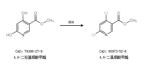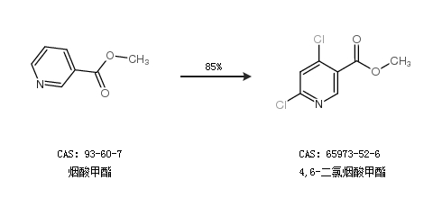 2.通过烟酸甲酯合成4,6-二氯烟酸甲酯,收率约85%;