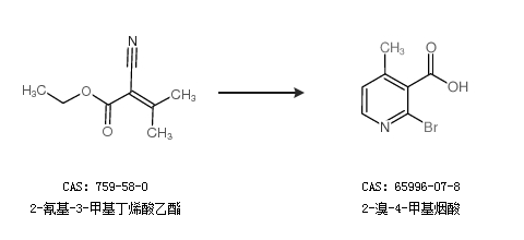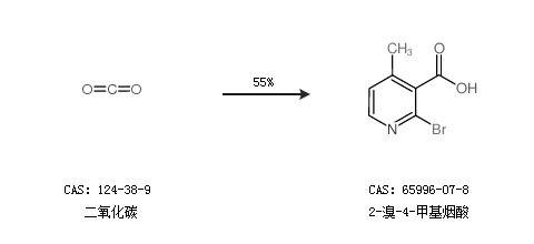 1.通过二氧化碳合成2-溴-4-甲基烟酸,收率约55%;