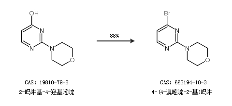 1.通过2-吗啉基-4-羟基嘧啶合成4-(4-溴嘧啶-2-基)吗啉,收率约88%;