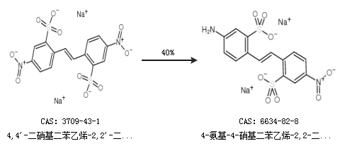 1.通过4,4''-二硝基二苯乙烯-2,2''-二磺酸双钠盐合成4-氨基-4-硝基二苯乙烯-2,2-二磺酸双钠盐,收率约40%;