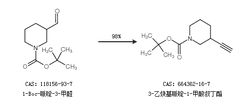 2.通过1-Boc-哌啶-3-甲醛合成3-乙炔基哌啶-1-甲酸叔丁酯,收率约98%;
