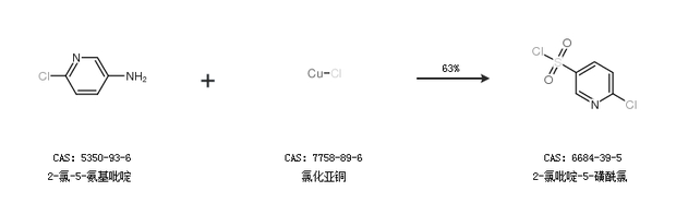 2.通过2-氯-5-氨基吡啶和氯化亚铜合成2-氯吡啶-5-磺酰氯,收率约63%;