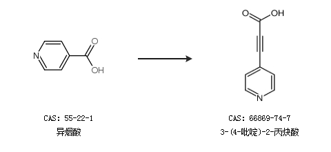1.通过异烟酸合成3-(4-吡啶)-2-丙炔酸
