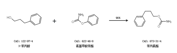 1.通过3-苯丙醇和氨基甲酸苯酯合成苯丙氨酯,收率约96%;