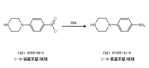 1.通过1-(4-硝基苯基)哌嗪合成1-(4-氨基苯基)哌嗪,收率约99%;