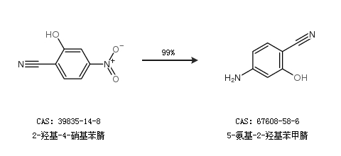 1.通过2-羟基-4-硝基苯腈合成5-氨基-2-羟基苯甲腈,收率约99%;