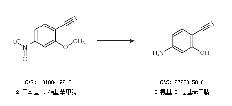 2.通过2-甲氧基-4-硝基苯甲腈合成5-氨基-2-羟基苯甲腈