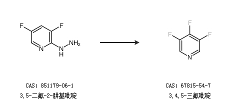 2.通过3,5-二氟-2-肼基吡啶合成3,4,5-三氟吡啶