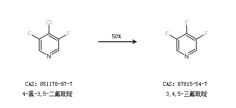 1.通过4-氯-3,5-二氟吡啶合成3,4,5-三氟吡啶,收率约50%;