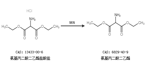 1.通过氨基丙二酸二乙酯盐酸盐合成氨基丙二酸二乙酯,收率约96%;