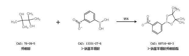 1.通过频哪醇和3-硝基苯硼酸合成3-硝基苯硼酸频哪醇酯,收率约95%;