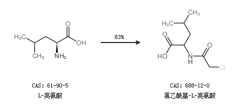 1.通过L-亮氨酸合成氯乙酰基-L-亮氨酸,收率约63%;