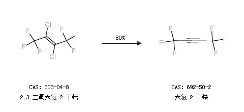 2.通过2,3-二氯六氟-2-丁烯合成六氟-2-丁炔,收率约80%;