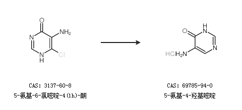 1.通过5-氨基-6-氯嘧啶-4(1h)-酮合成5-氨基-4-羟基嘧啶