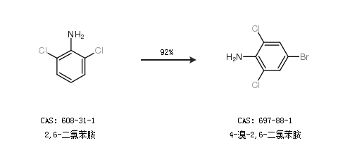 1.通过2,6-二氯苯胺合成4-溴-2,6-二氯苯胺,收率约92%;