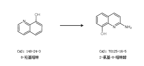 1.通过8-羟基喹啉-N-氧化物合成2-氨基-8-喹啉醇,收率约51%;