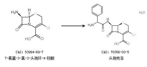 2.通过7-氨基-3-氯-3-头孢环-4-羧酸合成头孢克洛