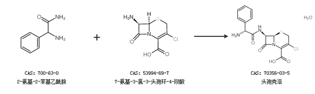 1.通过2-氨基-2-苯基乙酰胺和7-氨基-3-氯-3-头孢环-4-羧酸合成头孢克洛