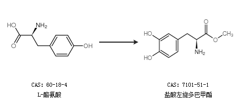 2.通过L-酪氨酸合成盐酸左旋多巴甲酯