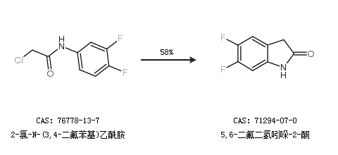 2.通过2-氯-N-(3,4-二氟苯基)乙酰胺合成5,6-二氟二氢吲哚-2-酮,收率约58%;