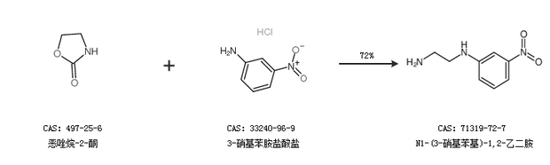 1.通过恶唑烷-2-酮和3-硝基苯胺盐酸盐合成N1-(3-硝基苯基)-1,2-乙二胺,收率约72%;