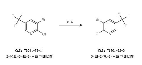 1.通过2-羟基-3-溴-5-三氟甲基吡啶合成3-溴-2-氯-5-三氟甲基吡啶,收率约81%;