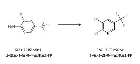 2.通过2-氨基-3-溴-5-三氟甲基吡啶合成3-溴-2-氯-5-三氟甲基吡啶