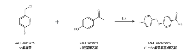 1.通过4-氟氯苄和对羟基苯乙酮合成4’-(4-氟苄氧基)苯乙酮,收率约61%;