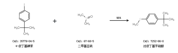 1.通过4-叔丁基碘苯和二甲基亚砜合成对叔丁基苄硫醇,收率约96%;