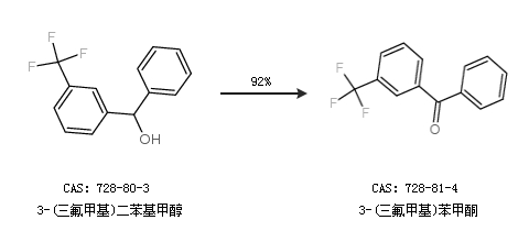 1.通过3-(三氟甲基)二苯基甲醇合成3-(三氟甲基)苯甲酮,收率约92%;