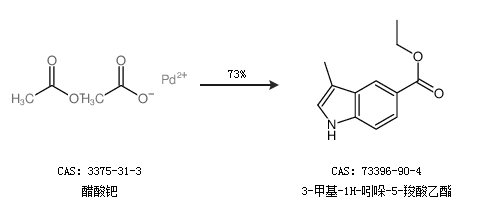 1.通过醋酸钯合成3-甲基-1H-吲哚-5-羧酸乙酯,收率约73%;
