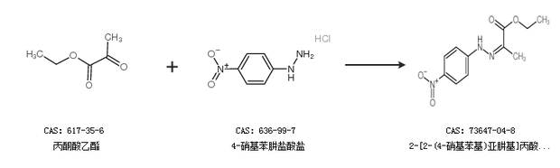 2.通过丙酮酸乙酯和4-硝基苯肼盐酸盐合成2-[2-(4-硝基苯基)亚肼基]丙酸乙酯