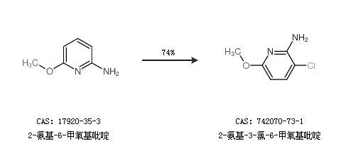 1.通过2-氨基-6-甲氧基吡啶合成2-氨基-3-氯-6-甲氧基吡啶,收率约74%;