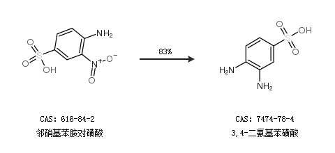 2.通过邻硝基苯胺对磺酸合成3,4-二氨基苯磺酸,收率约83%;
