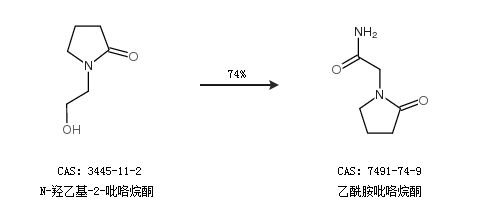 1.通过N-羟乙基-2-吡咯烷酮合成乙酰胺吡咯烷酮,收率约74%;