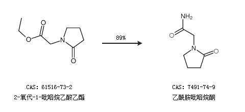 2.通过2-氧代-1-吡咯烷乙酸乙酯合成乙酰胺吡咯烷酮,收率约89%;