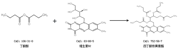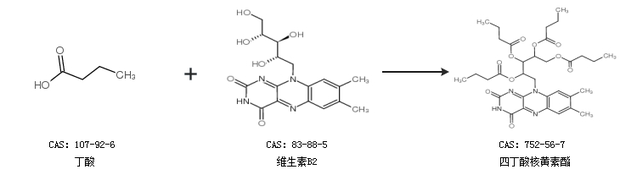 1.通过丁酸和维生素B2合成四丁酸核黄素酯