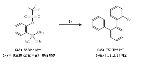 2.通过2-(三甲基硅)苯基三氟甲烷磺酸盐合成2-溴-[1,1:2,1]四苯,收率约6%;