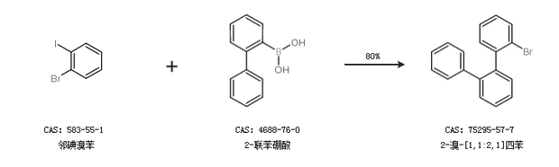 1.通过邻碘溴苯和2-联苯硼酸合成2-溴-[1,1:2,1]四苯,收率约80%;