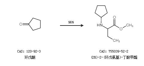 1.通过环戊酮合成(2R)-2-(环戊氨基)-丁酸甲酯,收率约96%;