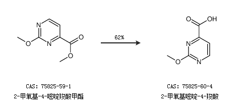 1.通过2-甲氧基-4-嘧啶羧酸甲酯合成2-甲氧基嘧啶-4-羧酸,收率约62%;