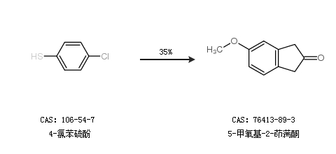 1.通过4-氯苯硫酚合成5-甲氧基-2-茚满酮,收率约35%;