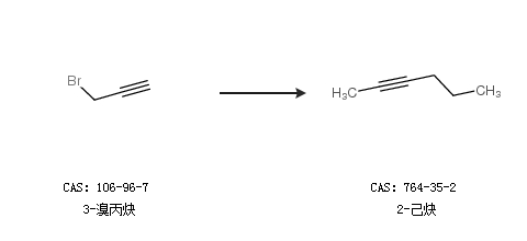 1.通过1-三甲基硅烷-1-己炔和1-辛炔合成2-己炔,收率约32%;